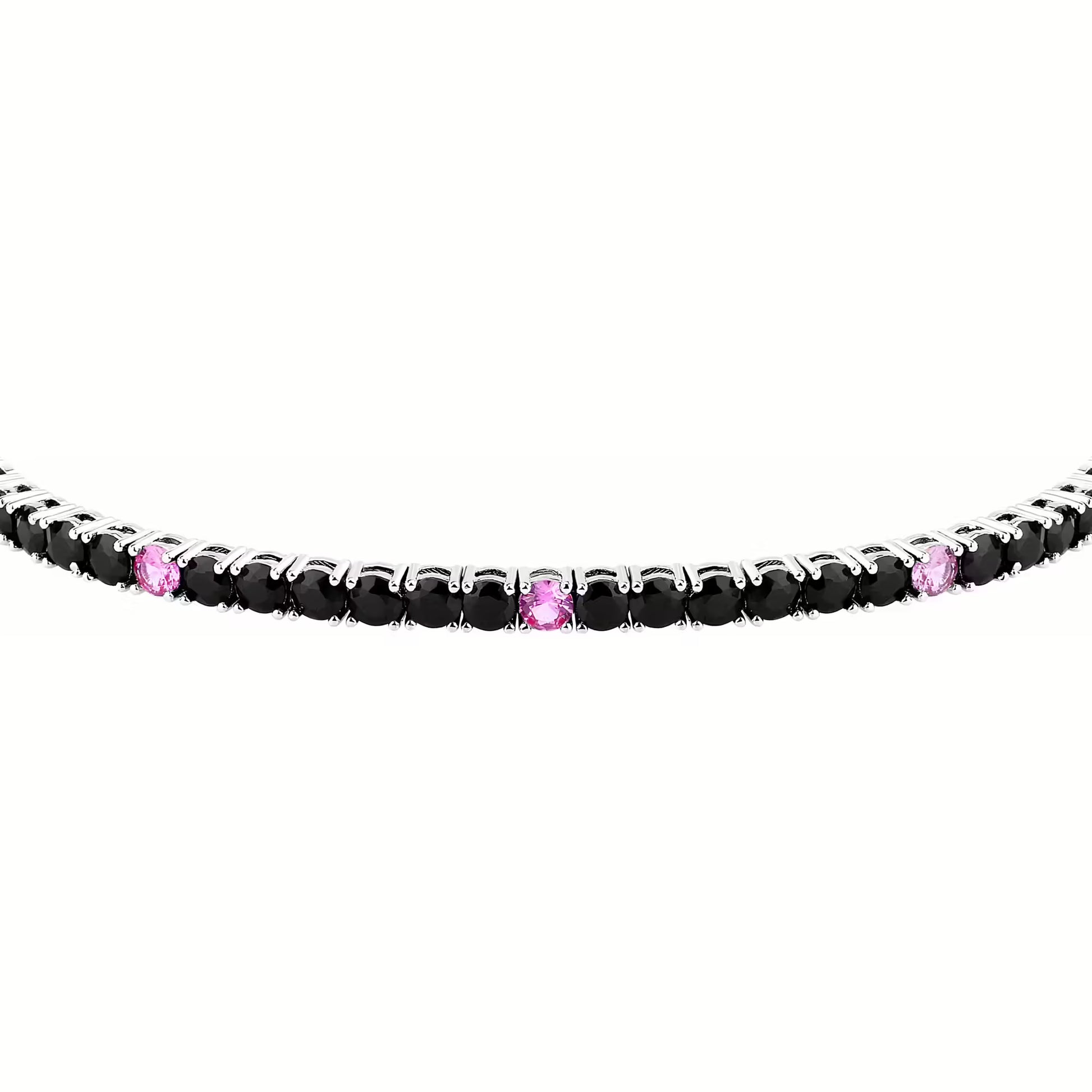 Bracciale da donna di Morellato della collezione Tesori. Bracciale in argento 925% di colore argento e zirconi rosa e neri. Misura: 16 + 3cm. La referenza è SAIW259