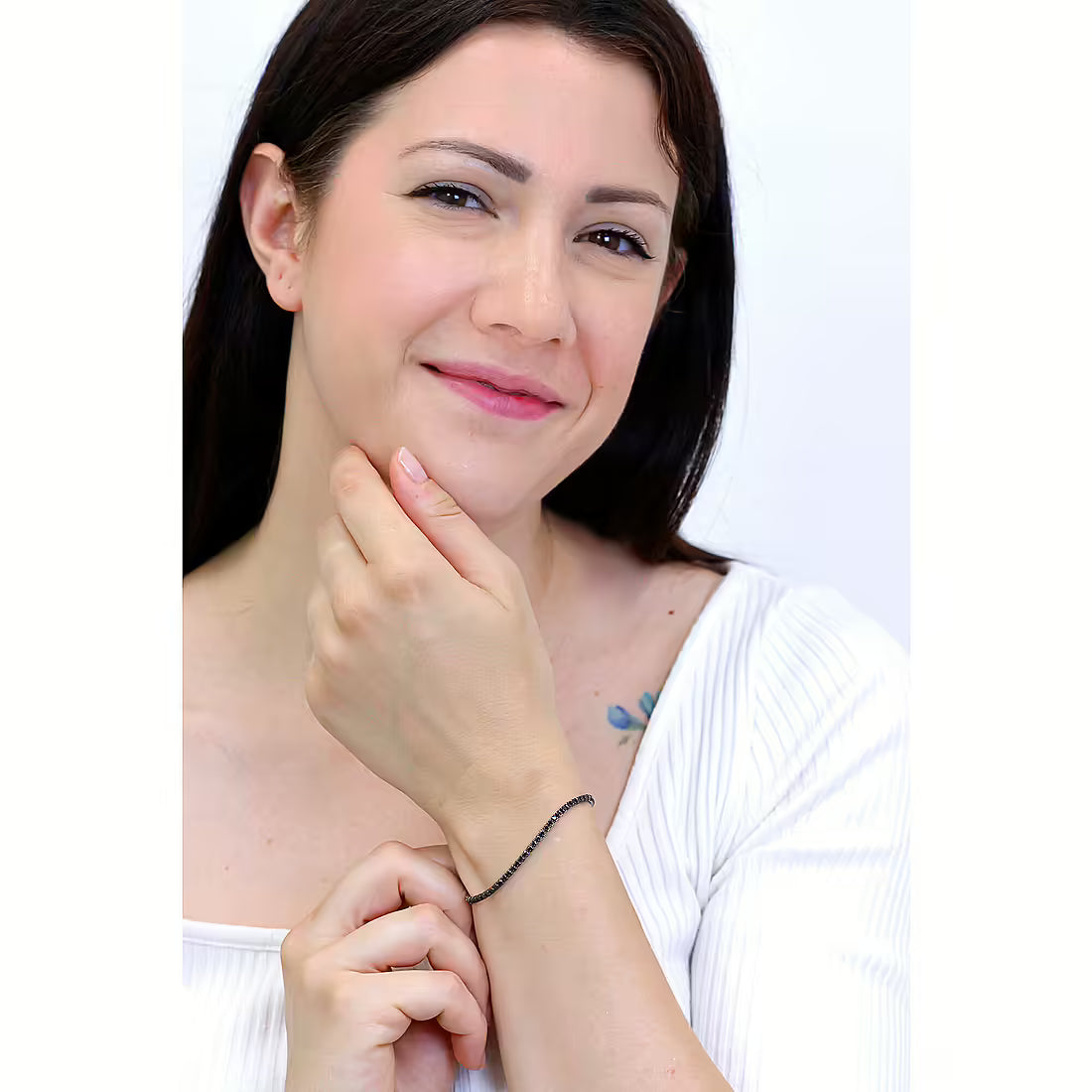 Bracciale Unisex Tennis in Argento con Zirconi Neri - AMEN