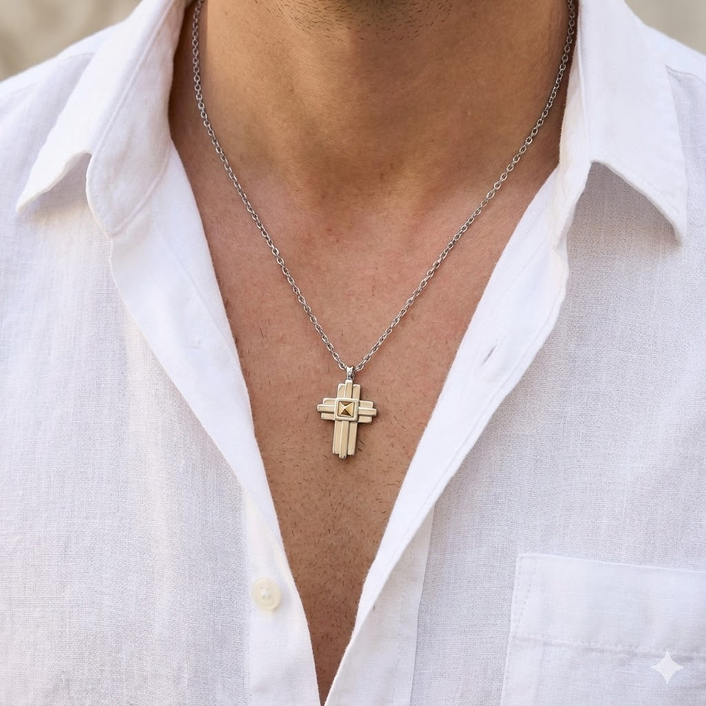 Collana Uomo MORELLATO Gold con Croce in Acciaio e Dettaglio Dorato