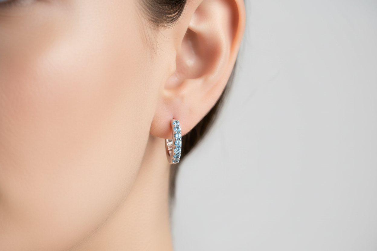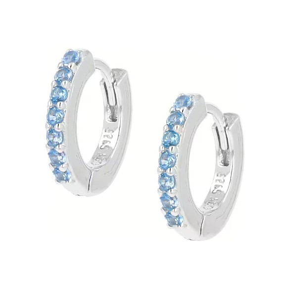 Orecchini Donna a Cerchio in Acciaio con Zirconi Azzurri - AMEN