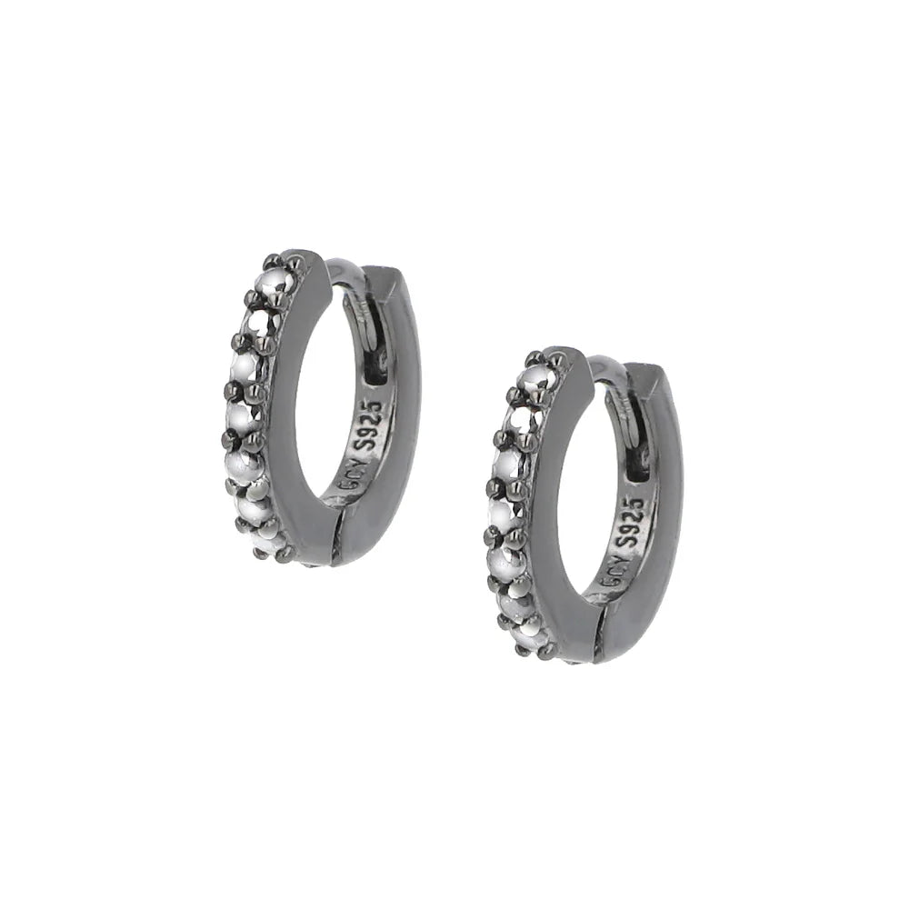 Orecchini Donna a Cerchio in Argento Nero con Zirconi Bianchi - AMEN