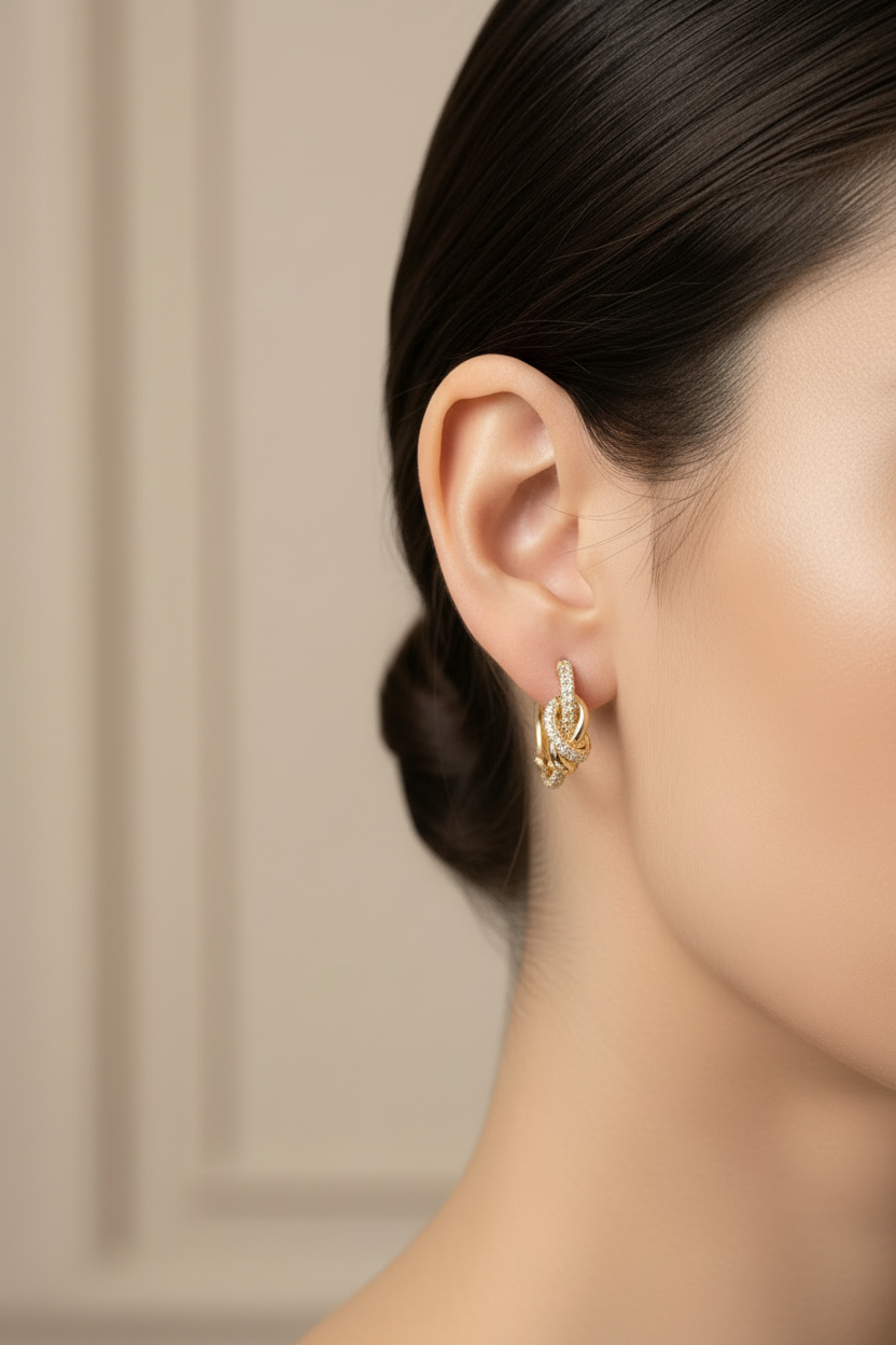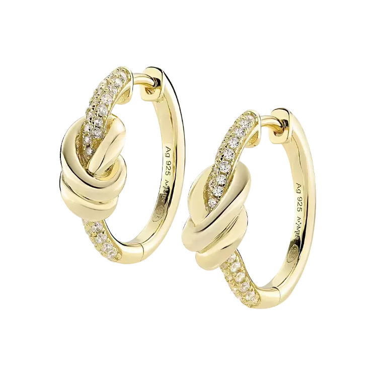Orecchini di Amen della collezione Nodo d’Amore, gioiello da donna realizzati in ottone con finitura oro e zirconi bianchi. La referenza è: OTORNOAMGZ.