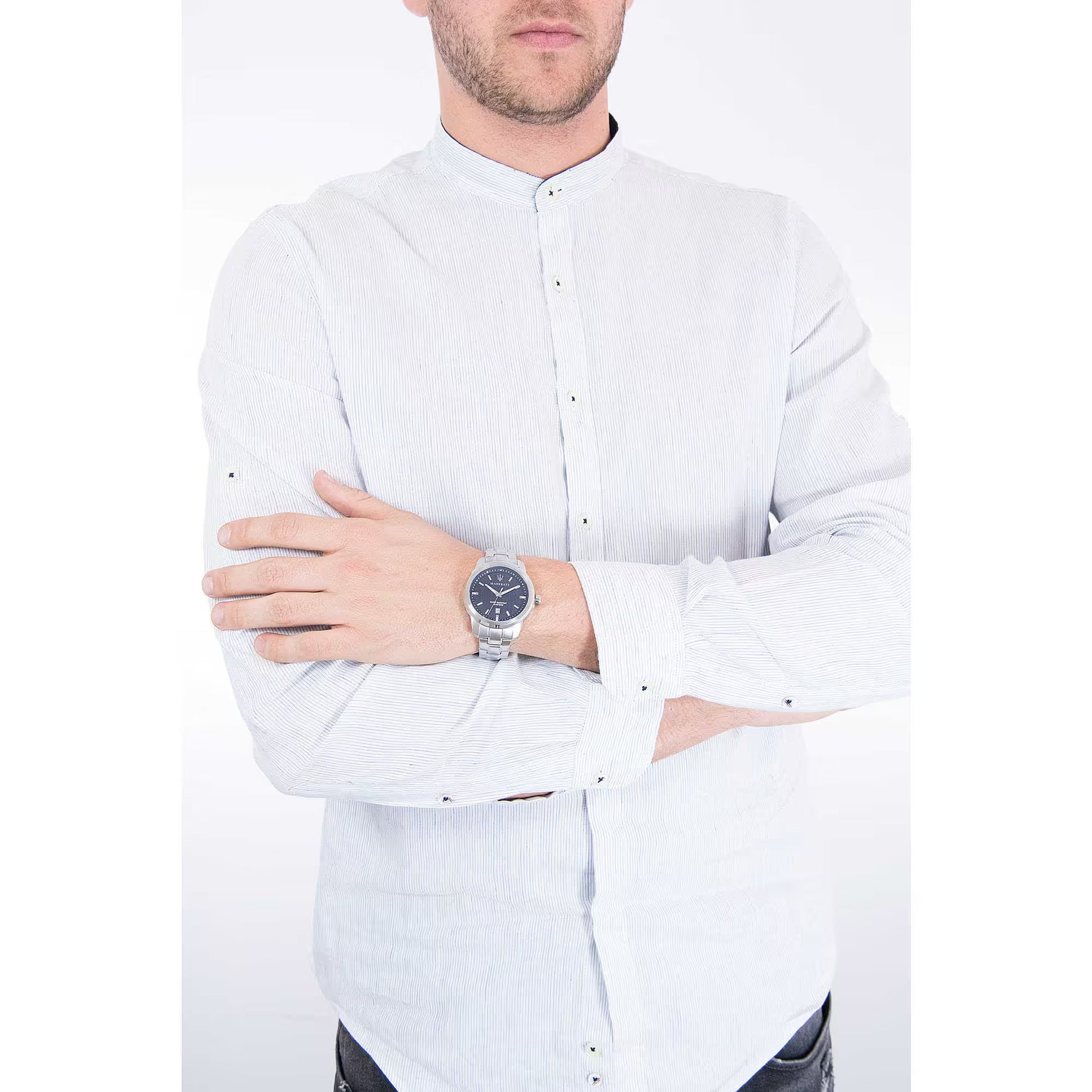 Orologio solo tempo da uomo di maserati della collezione successo . Orologio con cassa in acciaio della misura di 52x44mm con vetro minerale e quadrante di colore blu. Modello con cinturino in acciaio di colore argento e chiusura con diver buckle w/safety lock. Orologio con movimentovj42b12, tre sfere. La resistenza all'acqua di 5 atm.