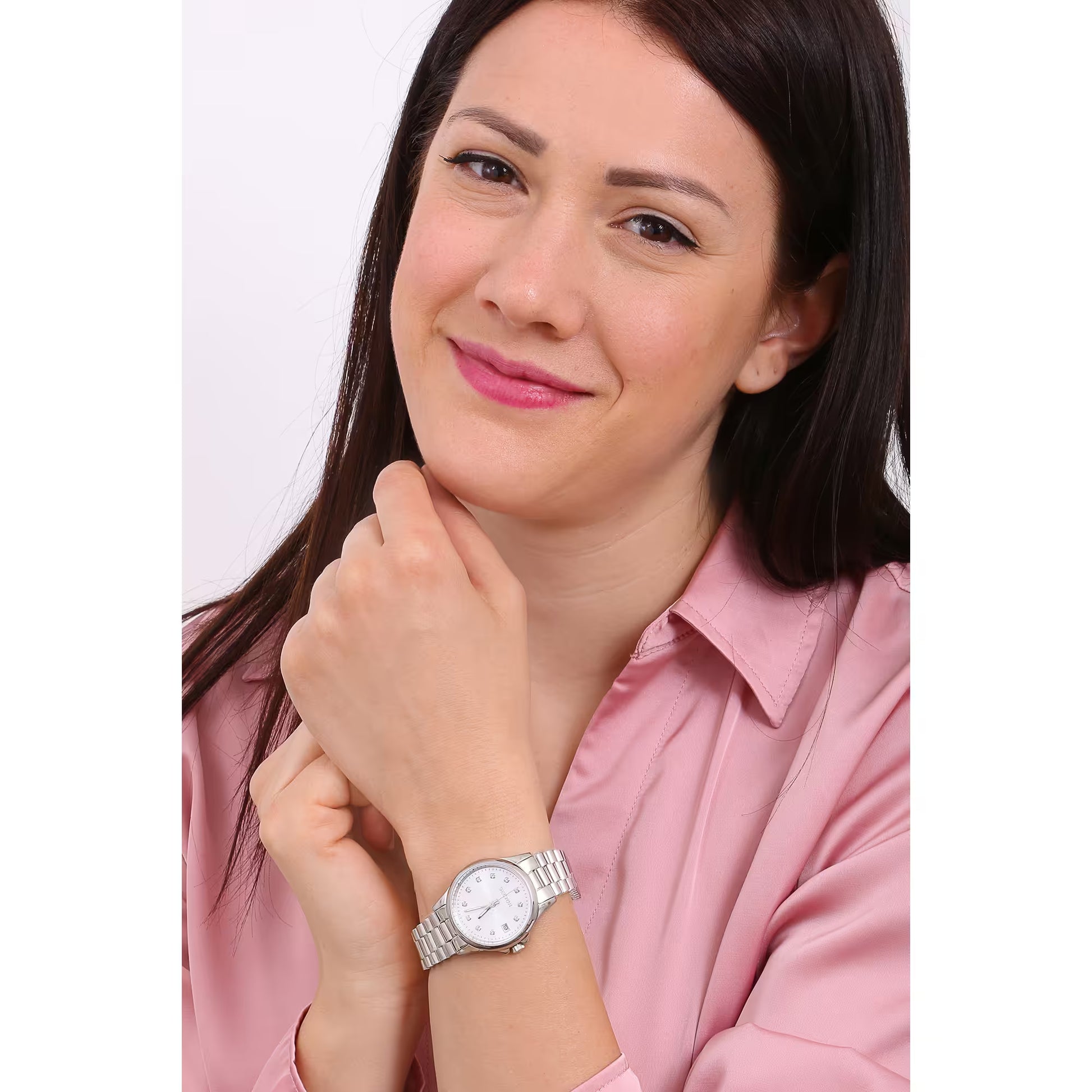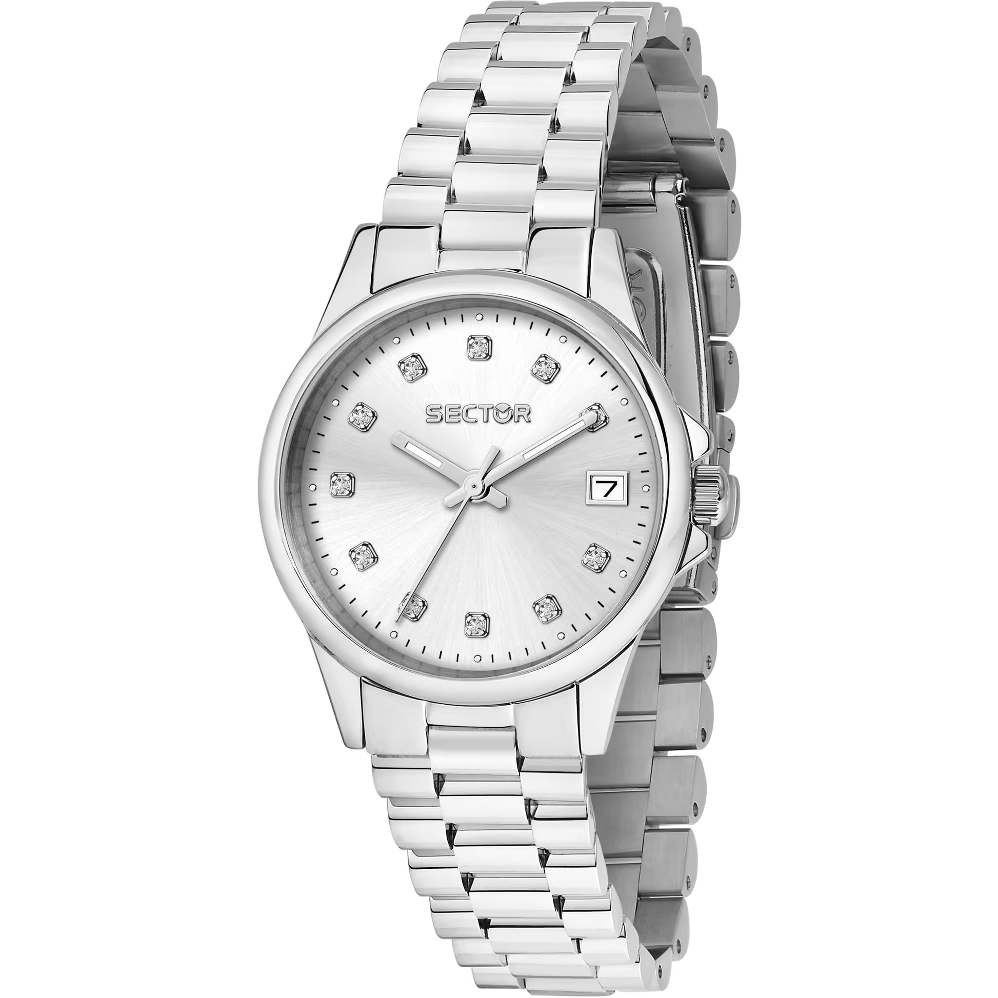 Orologio tempo e data da donna del brand Sector della collezione 230. Orologio realizzato in acciaio di colore argento di dimensione 32mm, la resistenza all'acqua è 10 ATM.